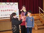 今年も幼稚部では豆まきをしました。この日までに「自分のお腹の中にはどんな鬼がいるのかな?」「豆をまく時は何て言うの?」「鬼はどこにいると思う?」など、いろいろな場面で話合いを重ねてきました。学級ごとに鬼のお面を作り、豆まきシュミレーションをした学級もあったようです。そして、いざ本番!いつもと違うプレイルームに集まった時から、背後を気にしつつソワソワする子ども達。2匹の赤鬼が登場すると、お母さんや先生の後ろに回りこんで逃げる子、泣き出す子、果敢に豆を手に立ち向かう子。みんなそれぞれでしたが、最後は力を合わせて鬼を追い出すことができました。一安心していると、優しいお顔の福の神がやってきてくれました。終始緊張の面持ちでしたが、終わった後はみんな一回りたくましくなったように感じました。お腹の中の鬼も退治して、今年も一年、元気に楽しく過ごせるといいですね。