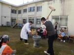 子ども達みんな挑戦しましたが、なかなか割れないスイカ・・・。最後は先生の出番です。