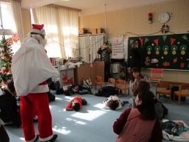 みんなが ねむったふりを していたら さんたさんが へやに はいってきた。