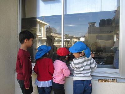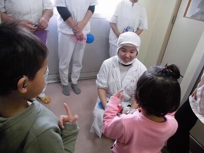 給食ができるまでのお話を聞いたり、給食を作る様子を見せてもらったりしました。