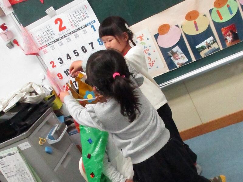 ようちぶの みんなで ぷれぜんとを つくったよ。
