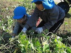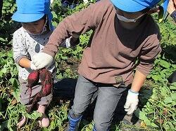 5月7日(水)に幼稚部全員で「さつまいもの苗植え」をしました。天気にも恵まれ、およそ50本の苗を全員で植えました。今年度ぱんだ組に入学した3歳児は、事前に学級でさつまいもの苗植えの練習を行った後に参加しました。経験している4歳児や5歳児の中には、一人で上手に植える子どももいました。今後は、10月の芋ほりや焼き芋を楽しみにさつまいもの生長を見守っていきます。最後にみんなで畑に向かって「大きくなあれ!!」と伝えました。