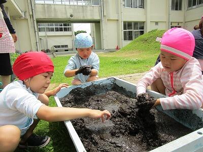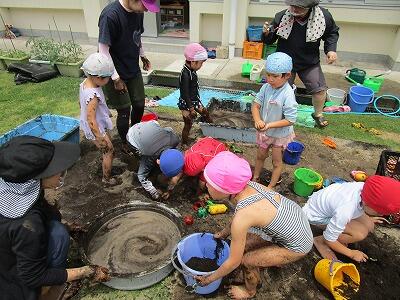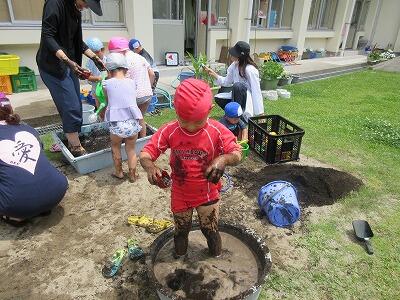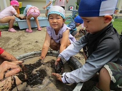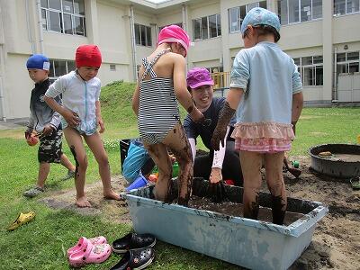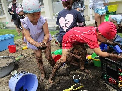 全身で泥の感触や変化を味わい、思い切り楽しむことができました。