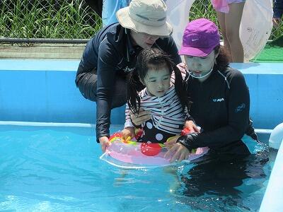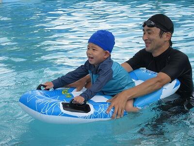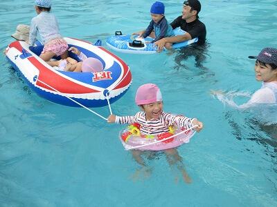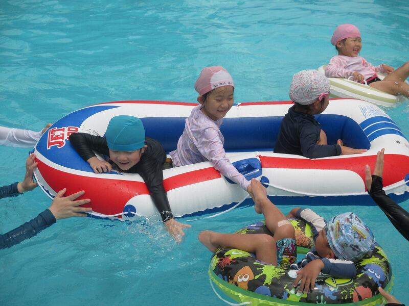 午前中はプール遊びでした。浮き輪とボートをもって、大プールへ!ダイナミックにジャンプして遊ぶ子もいました。