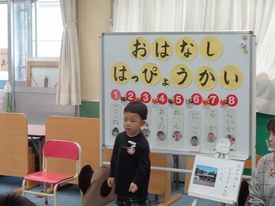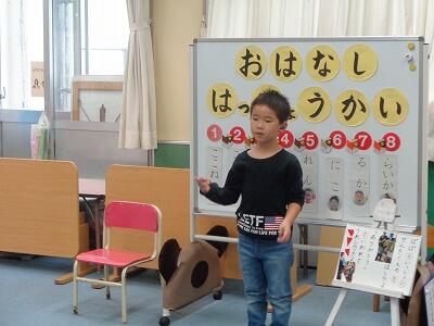 でも、れんしゅうした おはなしを いっしょうけんめい はっぴょうしたよ。