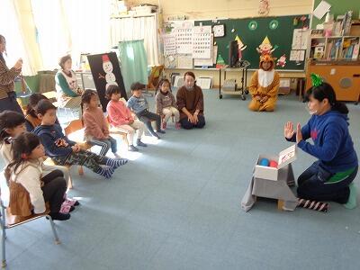 11月26日に都城総合文化ホールで行われた、劇団飛行船による「ピーターパン」の上演を観に行きました。事前学習では、みんなでピーターパンの劇遊びをしたり、おあつまりや朝の会、帰りの会などでピーターパンについてたくさんお話をしたりして、ワクワクした気持ちを高めてきました。本番ではピーターパンやフック船長達の華麗なダンスや面白い動きにみんな釘付けになっていました!フック船長達が隠れていると、どこからともなく「後ろ!後ろ!」「下!下!」とピーターパンに居所を教えようとするなど、会場に一体感が生まれていました。