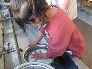 きりんぐみさんが きのう もちごめを あらってくれたよ。