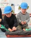 5月30日(木)に「さつまいもの苗植え」をしました。初めに、プレイルームで模型の畑に苗を植える練習をしました。ポイントは「斜めに植える。」でしたが、皆上手に練習ができました。