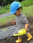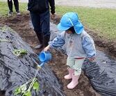 それぞれ、3本の苗を「斜めに」に植えることができました。植えた後は、水を掛けて「おおきくなあれ!」と