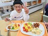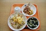 豚としめじのチャーハン、からあげです。みんなニコニコ笑顔で食も進みました。
