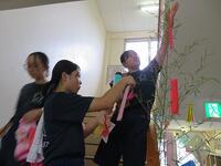 寄宿舎では玄関に笹を用意して、短冊に願い事を書いたり、飾りつけをしたりしました。