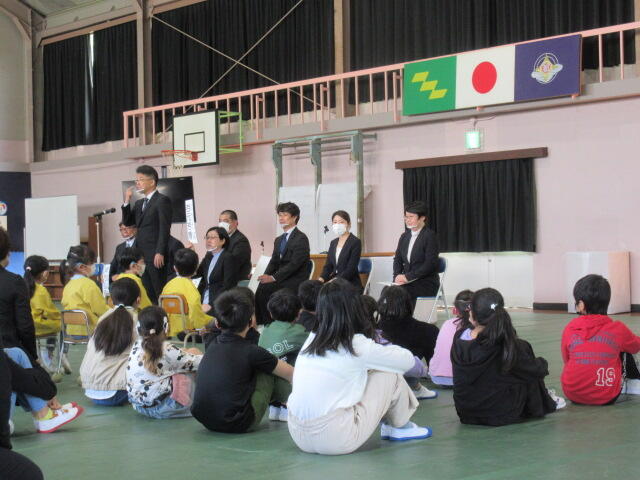 新任式では、新しく赴任された6名の先生方からの挨拶がありました。「どんな先生かな?」と興味深そうに先生方を見つめる子ども達の姿が印象的でした。