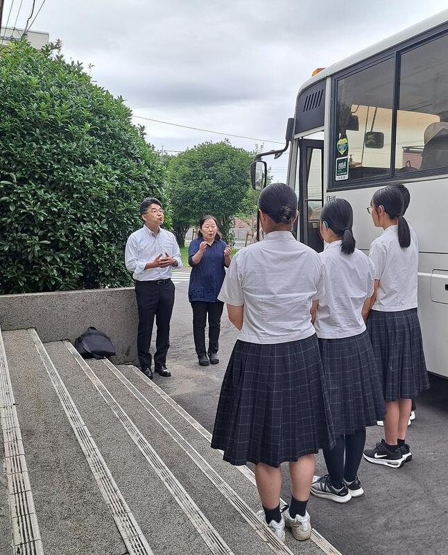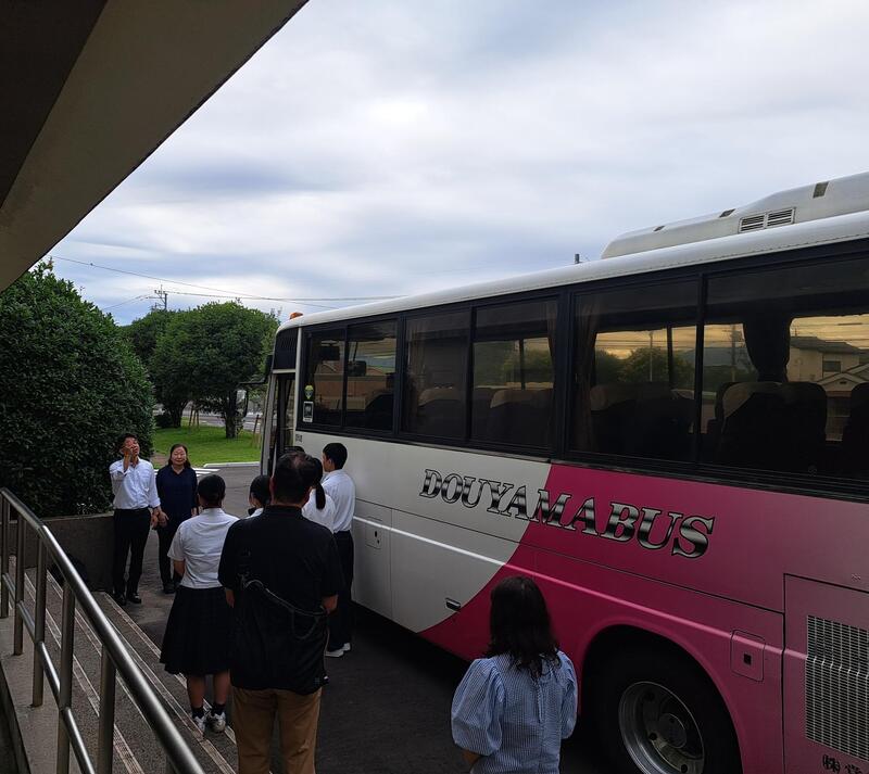 午前7時に本校の中学部と高等部の生徒が元気に大分市へ向けて学校を出発しました。