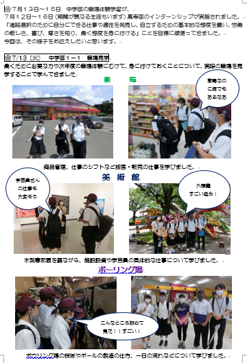 暑い日が続きますが体調に気を付けて、充実した夏休みを過ごしてくださいね。