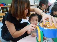 とんとん つぶしたり、くるくる まぜたり したよ。