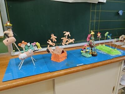 1・2年生が、図工「ピコリン星 ゆめのステージ」で作品を作りました。