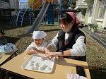 ぱんだ・うさぎ組の友達は、おうちの人と杵を持ち、きりん組のお友達は、一人で持ち、それぞれが、ぺったんぺったんとつく中で、音やねばる感触を味わいながら、おもちができあがる様子をじかに感じとることができたひとときでした。