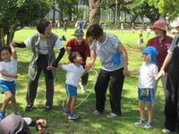 お弁当とお菓子を食べた後は、親子ふれあい遊びをしました。今日見たたくさんの動物や乗り物の動きを一緒に考えて再現してもらいました。ゾウ、フラミンゴ、ペンギン、サル、ゴーカート、メリーゴーランド・・・親子でいろいろと話し合いながら、みんな上手に真似をすることができていました。一家族ずつ発表してもらうと、みんなから「おおーっ。」という歓声や笑い声があがっていました。