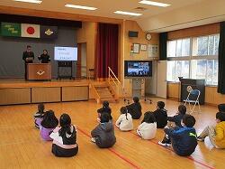 小学部・中学部代表挨拶がありました。小学部の児童は、「持久走を頑張りたい」「勉強を頑張りたい」と発表してくれました。中学部の生徒は新年の抱負として「明鏡止水」何事にも焦らず頑張りたいと発表してくれました。