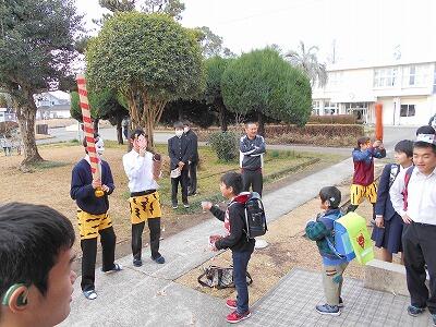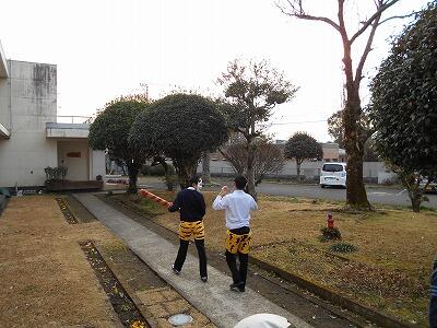 2月5日(火)登校前に寄宿舎の外で豆まきを行いました。