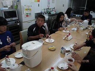 イルミネーション点灯式の後、グループに分かれてケーキを作りました。
