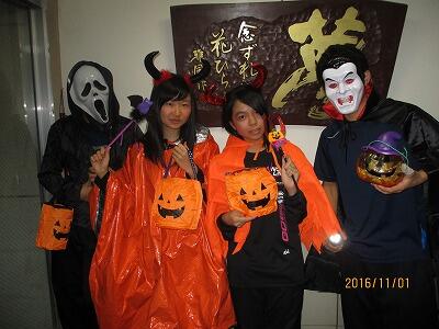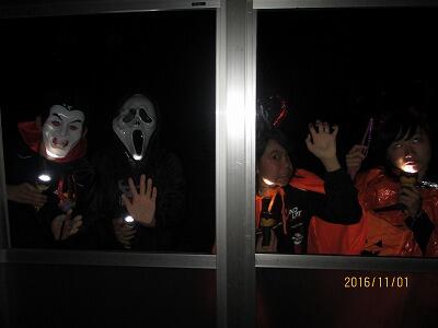 当日、食堂に真っ暗の中から仮装した4人が現れました。初めは驚きましたが、正体が分かると大喜びでした。