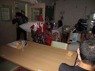 歓談中に突然電気が消え、トナカイが引くソリに乗ったサンタが登場!!