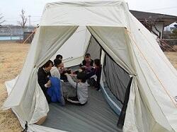 2月11日の祝日に非常時用テント体験を行いました。