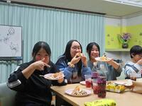 3月12日(水)に「お疲れ様会」を実施しました。1部では体育館でドッチビー大会、2部は食堂でクレープを作り、その後映画鑑賞をしました。一つ一つに笑いがあり、舎生7名が一緒に行う最後の行事が最高の思い出となりました。特に、役員3名が率先して計画、準備を行ってくれたおかげで中身の充実した内容となりました。