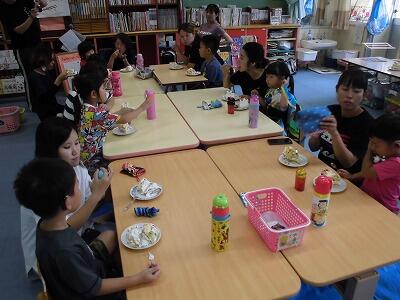 けーきは、とっても おいしかったから、ぺろりと たべちゃった。