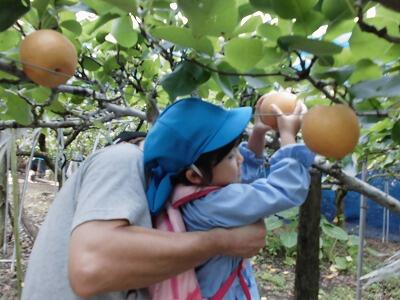 りんごえんには りんご、ぶどう、なしが あったよ。
