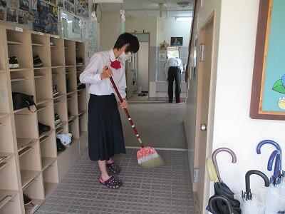 〔女子棟 浴室の清掃〕 〔女子棟 玄関の清掃〕