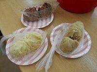 昼食は非常食体験を行いました。加熱剤で温めるタイプの非常食と鍋で作る蒸しパンを作りました。蒸しパンの具は、チョコチップや栗、ココアパウダーなど9種類の具から好きな具を選び作りました。鍋で蒸し上がるのをワクワクしていた生徒たち。自分たちの作った蒸しパンに大満足でした!!