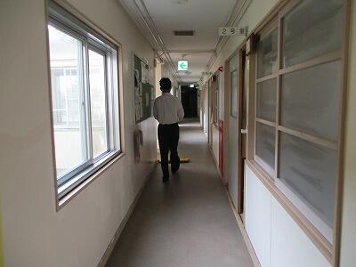 〔男子棟 廊下の清掃〕 〔女子棟 廊下の清掃〕