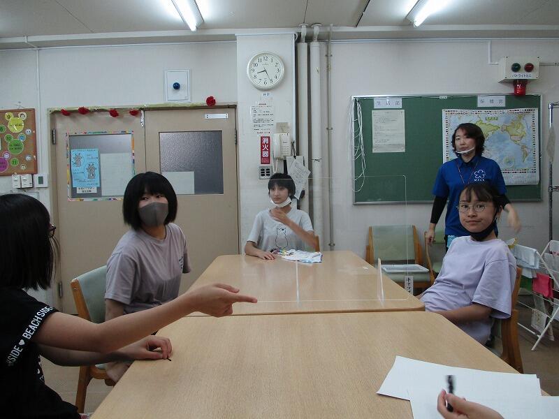 午後からはチームワークゲームを行いました。2つのチームに分かれカード探し、クイズ、まちがい探しを行いました。カードを見つけて大はしゃぎする生徒、鋭い推理でクイズに答える生徒、黙々とまちがいを探す生徒とチーム皆で協力してゲームに挑んでいました。