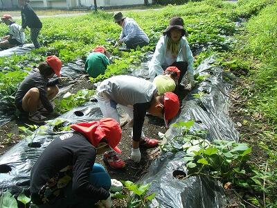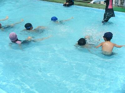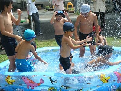 畑の草取りで汗を流した後はプールで水遊びをしました!!