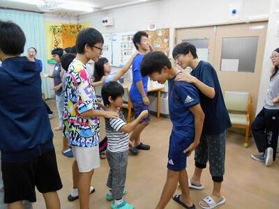 誕生者に、寄宿舎生一人一人から心のこもったメッセージと花束を贈り、お祝い後は全員でゲーム。