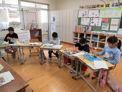 自分の好きな本と花やチョウを作ったり、庭でたくさんの動物たちが遊んでいる姿を