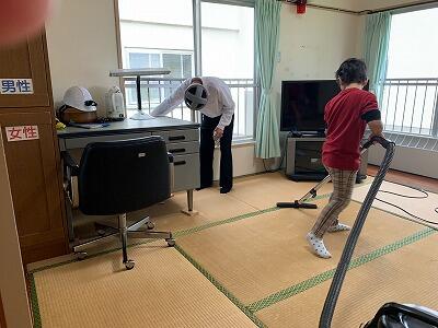 〔男子棟 舎監室の清掃〕 〔男子棟 洗面所の清掃〕