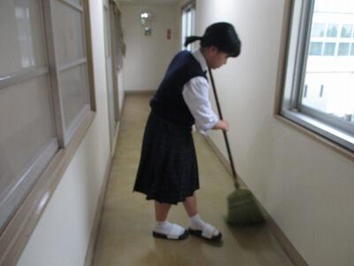 〔男子棟 廊下の清掃〕 〔女子棟 廊下の清掃〕
