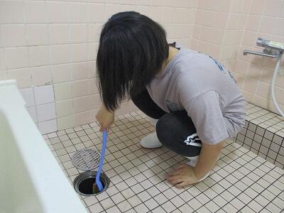 〔女子棟 浴室の清掃〕 〔女子棟 玄関の清掃〕