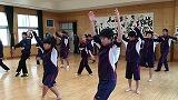 最初に、宇戸田さんが考えた振り付けを教えていただきました。難しい動きもありましたが、丁寧に教えていただいて、生徒たちは、積極的に学ぶ様子が見られました。