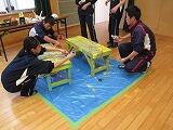 グループごとに、オブジェ制作開始。絵の具や素材は、ガチャくじで決めました。