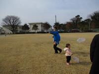 運動場で元気いっぱい凧あげをしました。