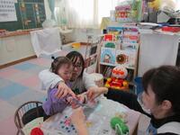 この日は、みんなでお絵描き遊びをしました。 絵の具も使いました