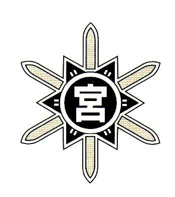 宮崎県の「宮」を中心におく緑地は輝く太陽と豊かな緑を表わし、六ぺんの花びらは、人間としてのバランスのとれた発達をすることにより円満な人格に育ってほしいという願いをこめているものであります。