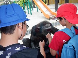 他にも山羊の群れの中に入ったり、キリンが近づいて来たり、チンパンジーとガラス越しにお話ししたりと、楽しい一日を過ごしました。
