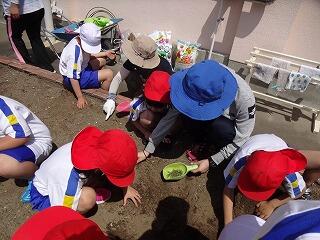 小学部2年生の花壇で様々な野菜を育てることになりました。「なす・ピーマン・ミニトマト・サツマイモ・すいか」など盛りだくさんです。「野菜が育ったらカレーやピザを作りたい!」「スイカ割りをやってみたい!」と収穫後の楽しみがふくらむ2年生の子どもたち。畑の雑草を抜き、肥料を混ぜ、畝づくりをした後に苗を植えました。朝は児童、夕方は職員で水やりをしています。おいしい野菜ができるまで2年生全員で畑の手入れや水やりを頑張りたいと思います。