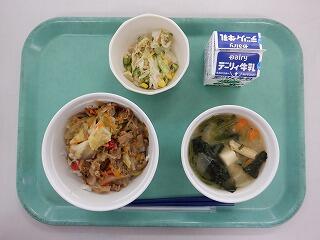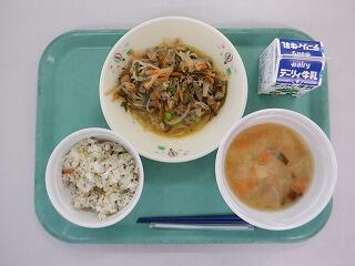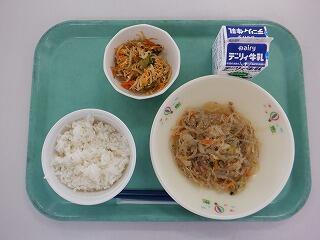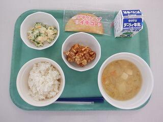 今日の給食で宮崎県産なのは、「お米、牛乳、豚肉、キャベツ、ピーマン、しいたけ、ほうれん草、千切り大根、きゅうり、日向夏ドレッシング」です。
