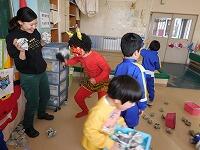 びっくりして固まる子、逃げ回る子、果敢に新聞紙のボールを投げつける子…、いろいろな子ども達の様子がみられました。